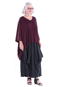 An elegant oversized block-style short-sleeve Top with V-neck with drape back creating a subtle cocoon scooped hem. Seam detailing at back.