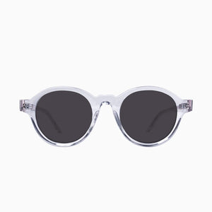 A classic shape with a thick, flat face and thinned temples. Slightly oversized and featuring metal face details and branded temple caps.