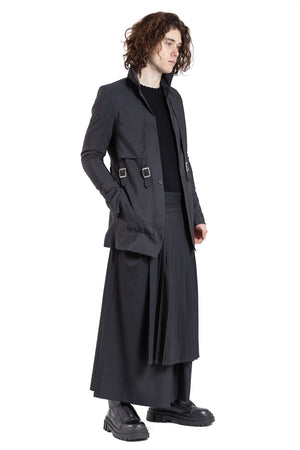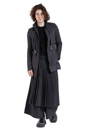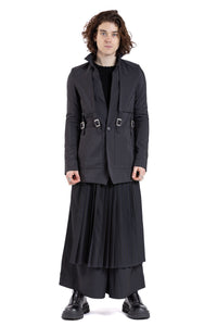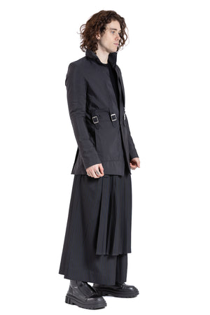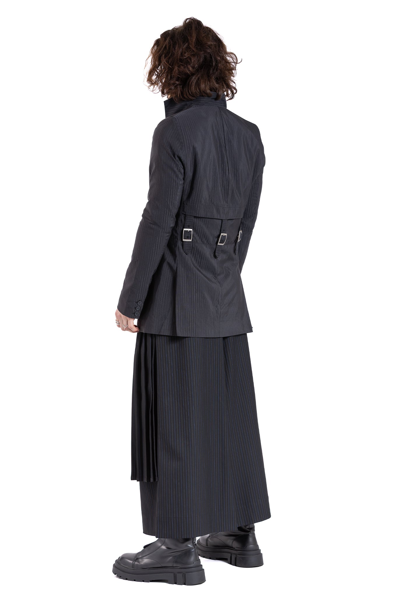 Tailored high-collar Blazer with yoke and buckle detailing at waist. Insert side pockets.