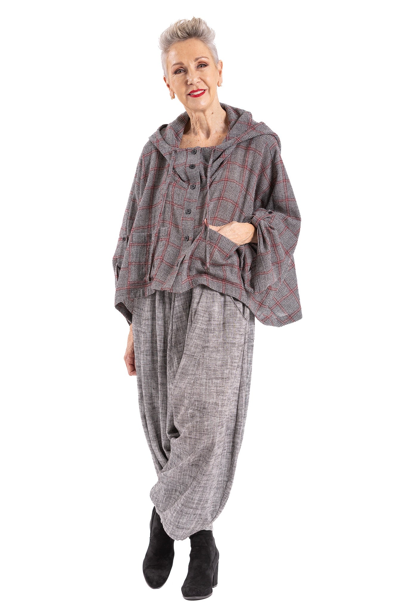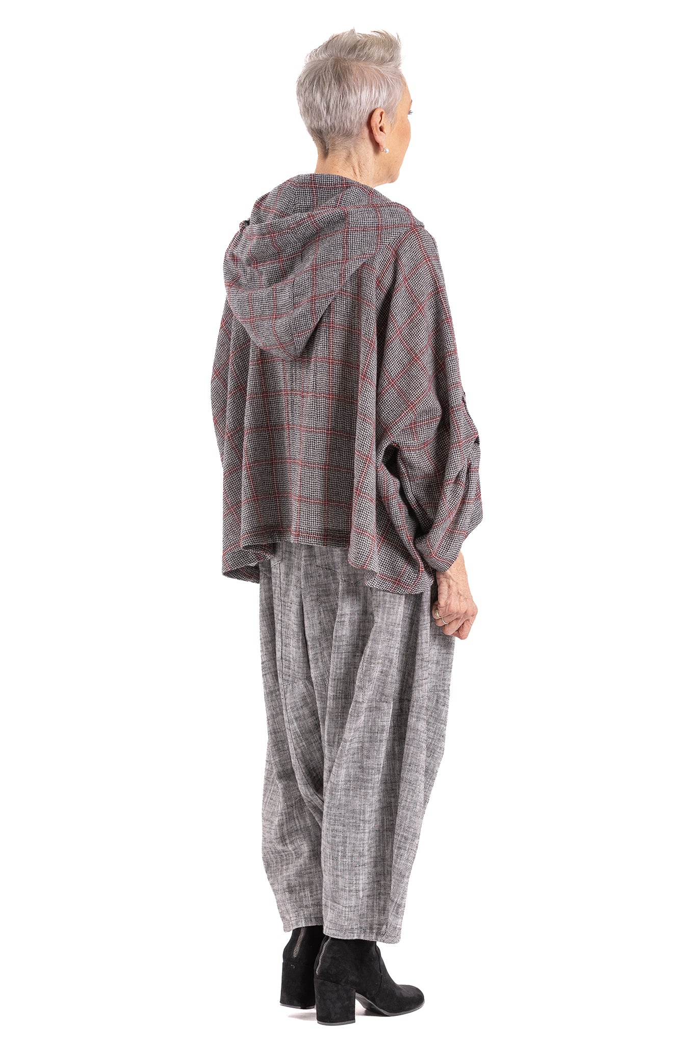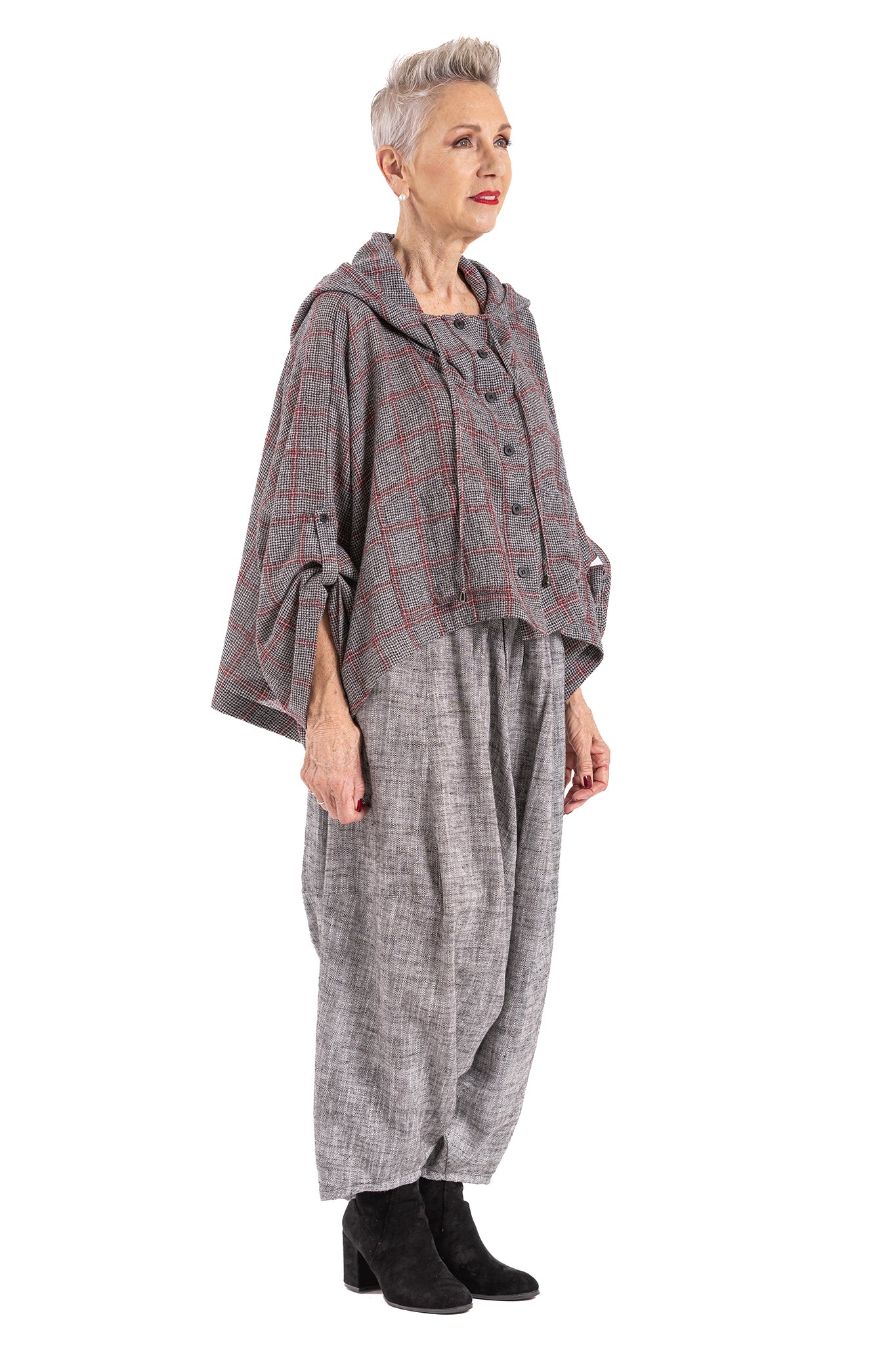 Cropped block-style Hoodie with flattering scoop hem. Buttons at centre front for closure. Patch pockets. Only 10 garments produced in a beautiful luxurious Japanese-made Wool.