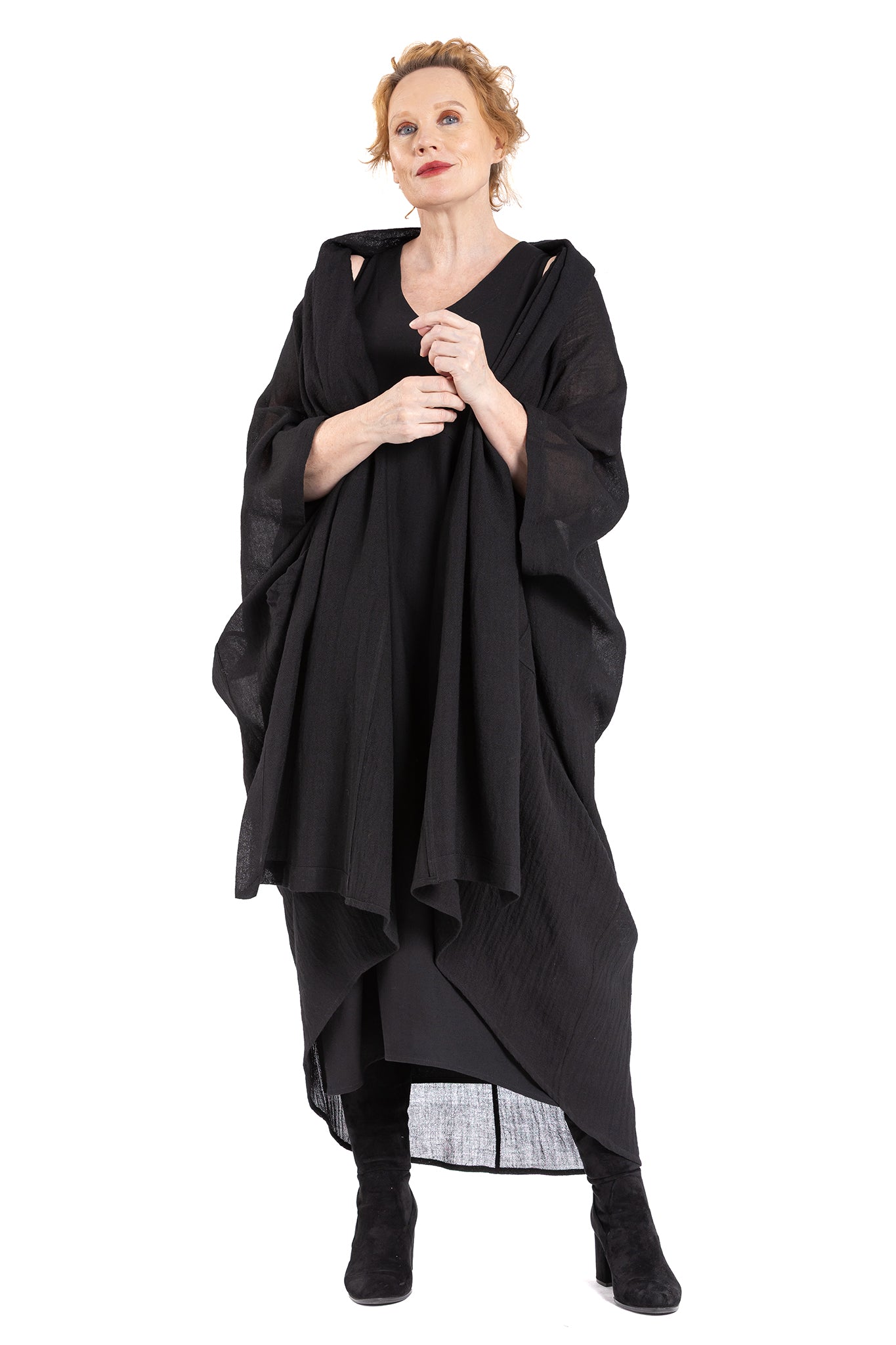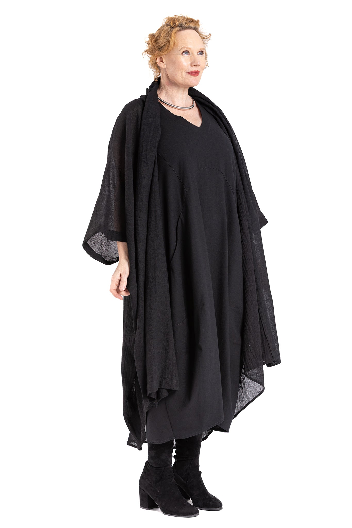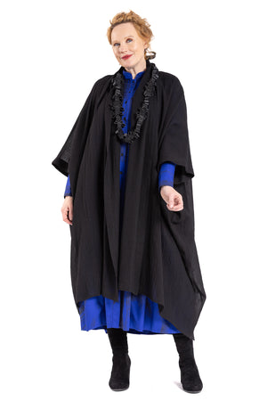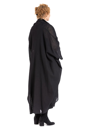 Oversized drape-collar Jacket with patch pockets. Front panel wraps around towards back.